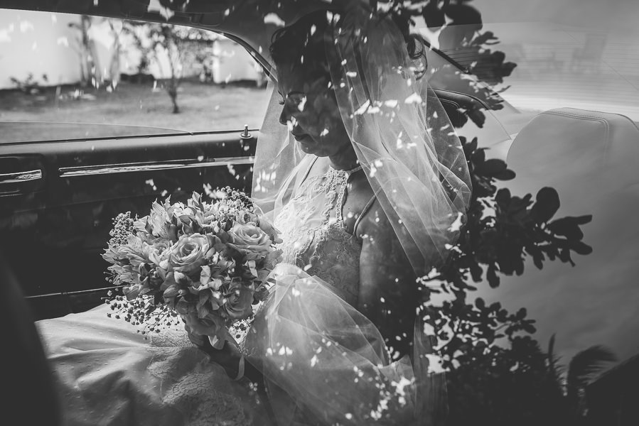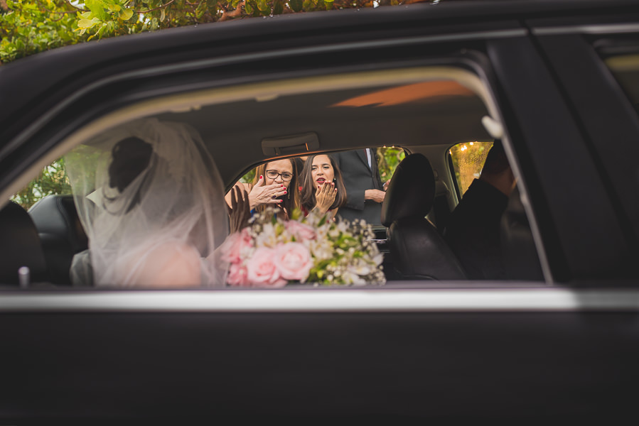 Noiva saindo do carro, e o papai aguardando