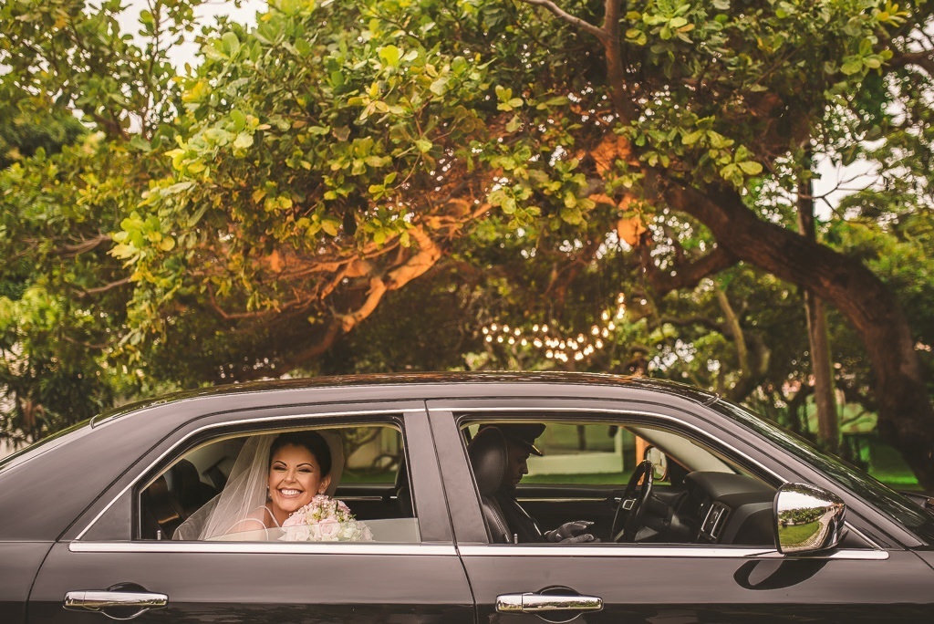 Noiva saindo do carro, e o papai aguardando